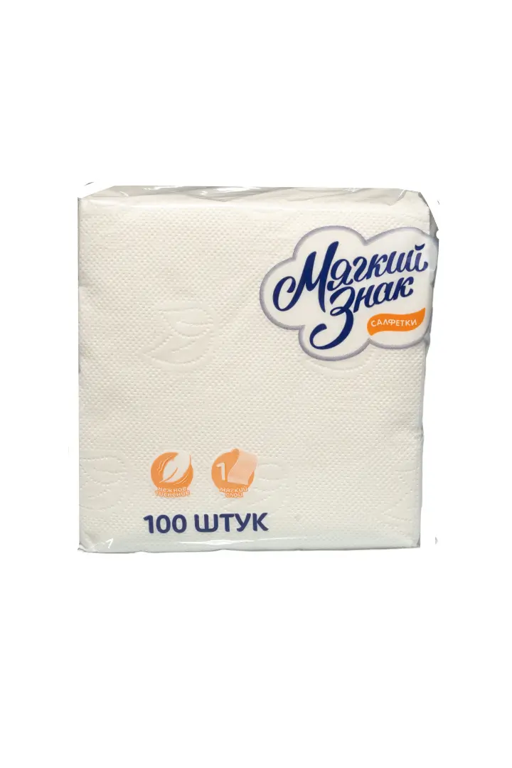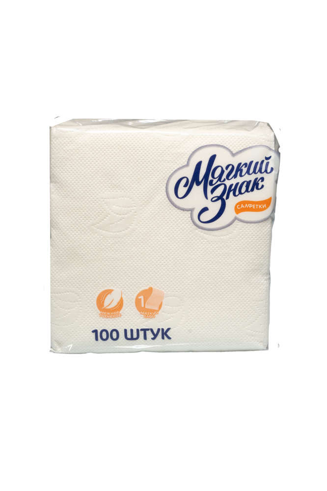 Бумажные салфетки: столовые 1сл 100листов 24х24 Мягкий знак белые