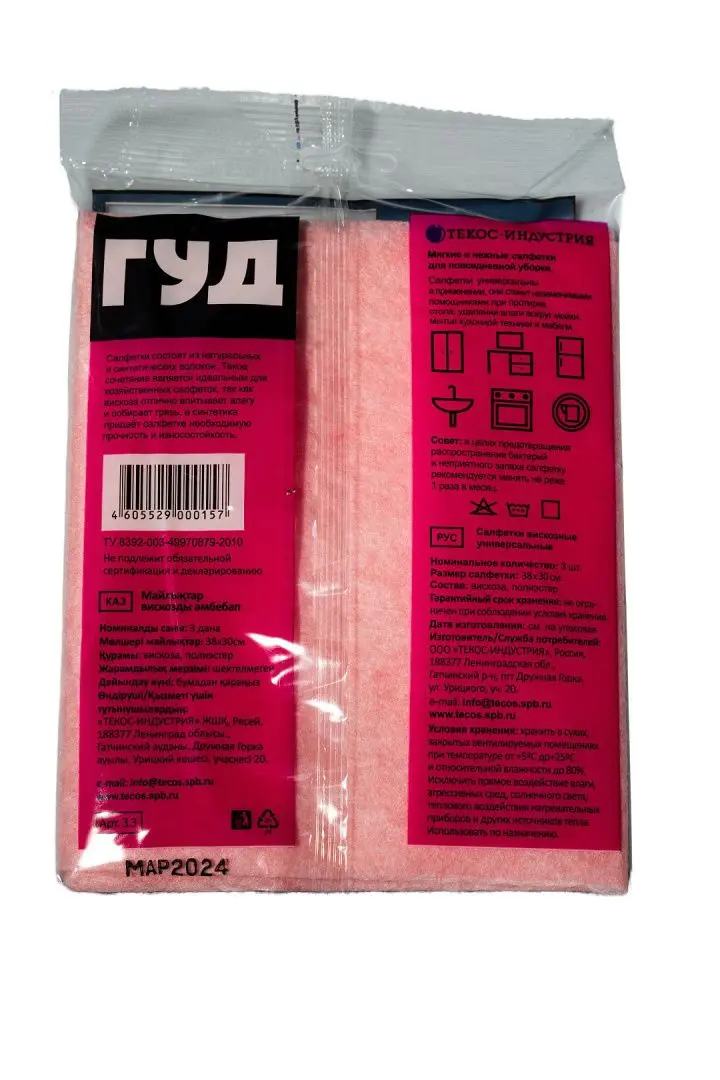 /пач.Салфетки вискозные ЭТЮД, пачка 3 шт.Размер: 30х38 см.Цвет: в ассортименте.Состав: вискоза, полиэстер.Плотность: 80 гр/м2.В индивидуальной упаковке.